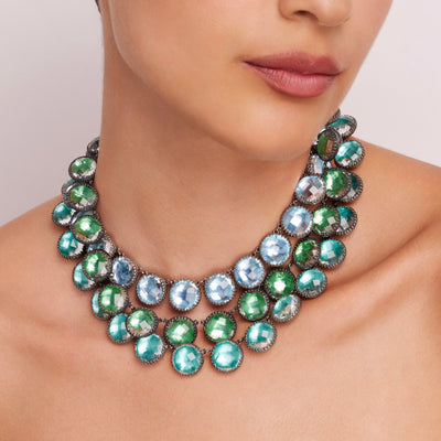 Inspired by Georgian period foiled jewelry, Larkspur & Hawk meticulously lines each gemstone with signature metallic foils, allowing each piece to glow from within.
