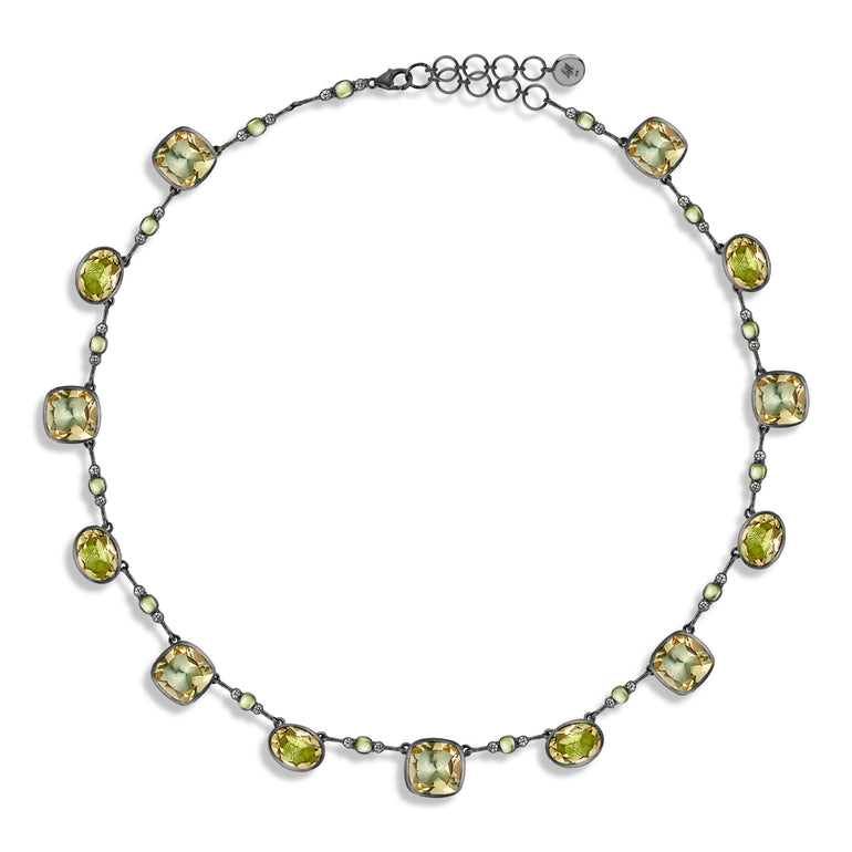 Luzia Cushion Oval Necklace in Lemon Quartz (Black Rhodium Wash)