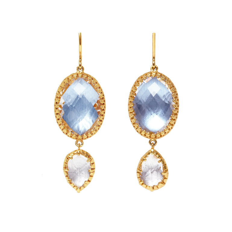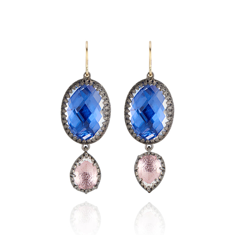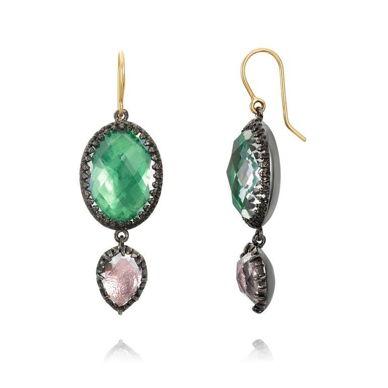 The subtle asymmetry and whimsical colors have made this earring one of our most popular. The gentle movement accentuates the varying stone cuts and bezels, allowing them to truly shine.