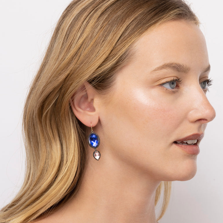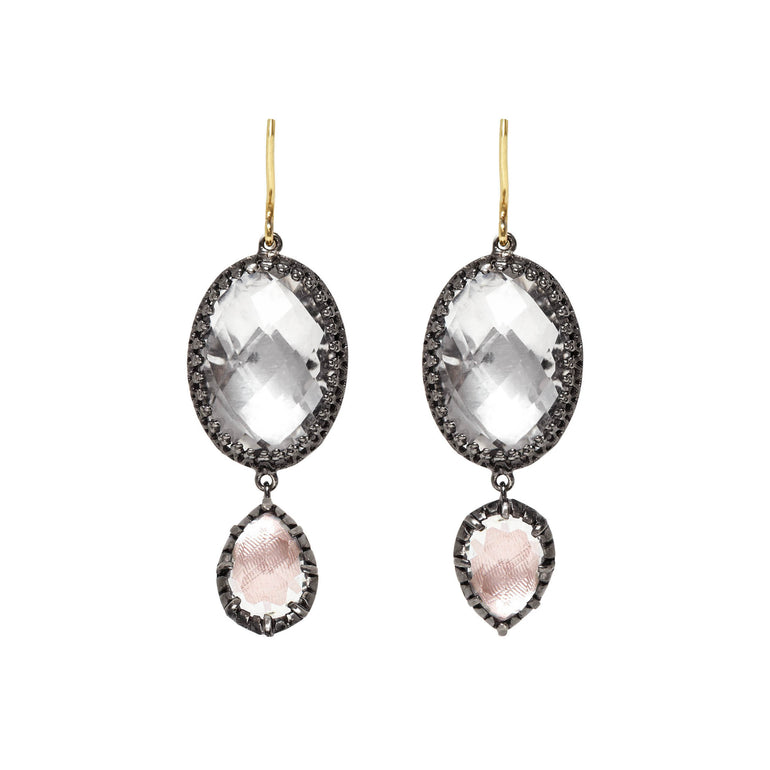 Sadie Oval And Pear Drop Earrings (Black Rhodium Wash)