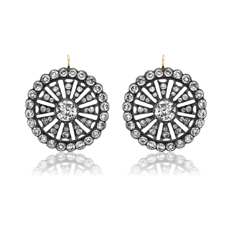 Imagine a set of these buttons sewn onto a beautiful Georgian gown or waistcoat! Jeweled buttons came in all different shapes and sizes, and these are large, sparkling, and utterly dazzling. When fashion trends shifted away from grand style to a more simple Classical style, jeweled buttons fell out of favor. Cleverly, some were made into earrings and continue to be repurposed today.The closed back settings hold foiled paste stones that have retained their brilliance over the years. A great addition to one’s jewelry box!