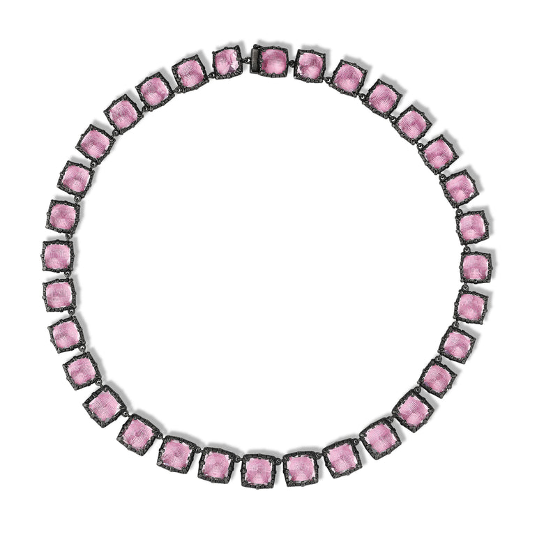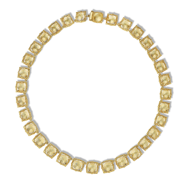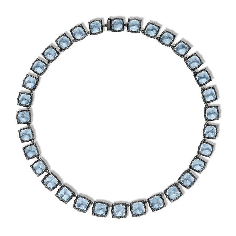 The Bella Graduated rivière reimagines our best selling silhouette with larger, foiled rose-cut stones in antique-inspired, exaggerated collet settings. True to the Georgian period, this subtly graduated rivière resembles a sparkling river around the neck.