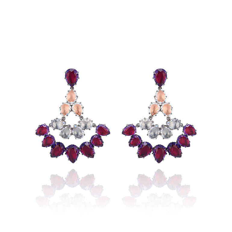 Sleek and streamlined, Caterina lends classic silhouettes a contemporary edge with their delicate prongs and flat-topped stones. These large and lightweight earrings do not lack color or detail. Notice the sunburst pattern on the back of each setting, a little surprise that recalls settings of the 18th century.
