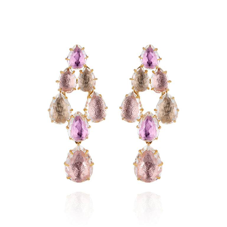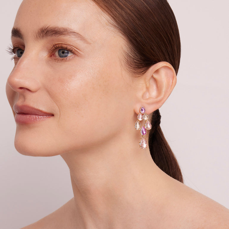 Sleek and streamlined, Caterina lends classic silhouettes a contemporary edge with their delicate prongs and flat-topped stones. These lightweight earrings do not lack color or detail. Notice the sunburst pattern on the back of each setting, a little surprise that recalls settings of the 18th century.