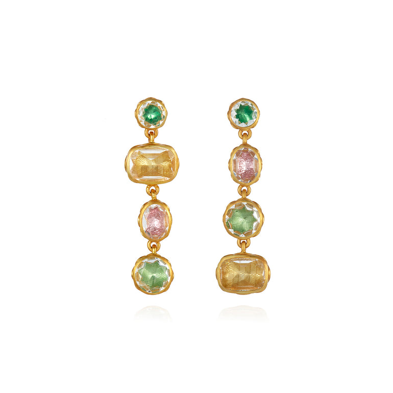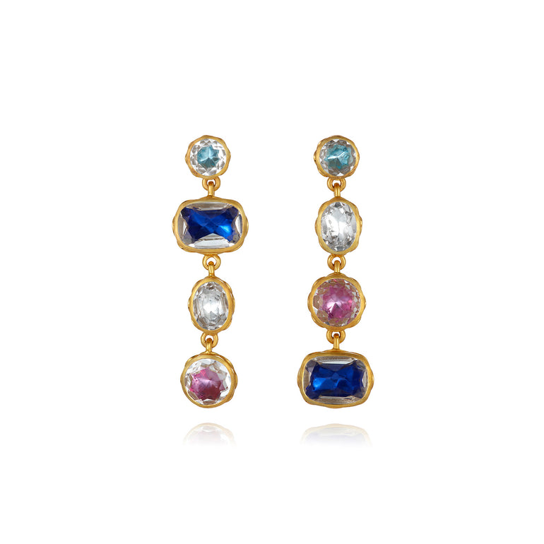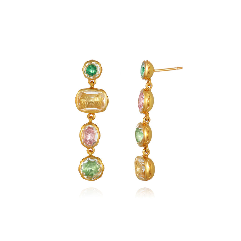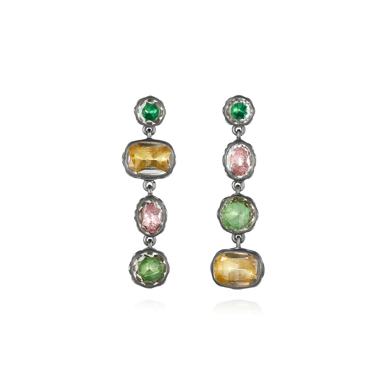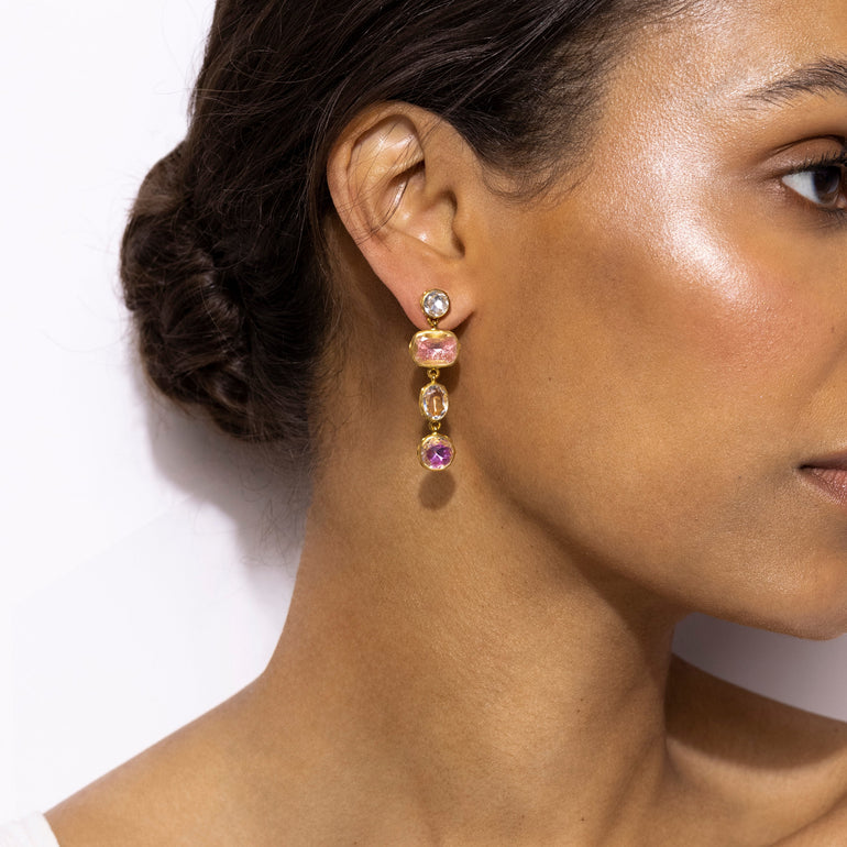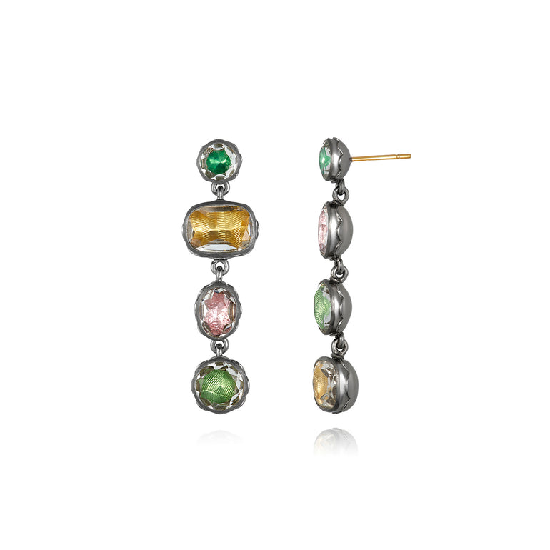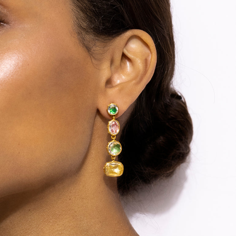 The asymmetrical design of our 4-drop earrings are a playful version of their antique counterpart. Delicate and lightweight, they dangle easily from the ears, catching the light with every move.