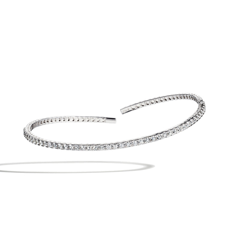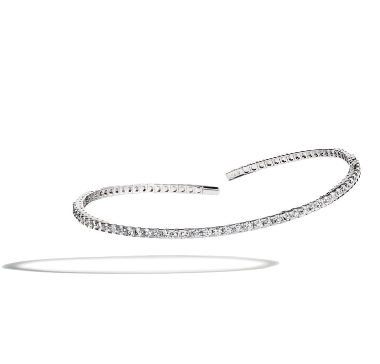This special choker is surprisingly easy to put on and never take off. It appears to be a continuous line of diamonds that is uninterrupted by the white gold setting, and is the pièce de résistance of the bridal collection. It woud make a very special engagement gift, versatile enough to be worn on numerous occasions, beginning with your wedding day and lasting indefinitely.