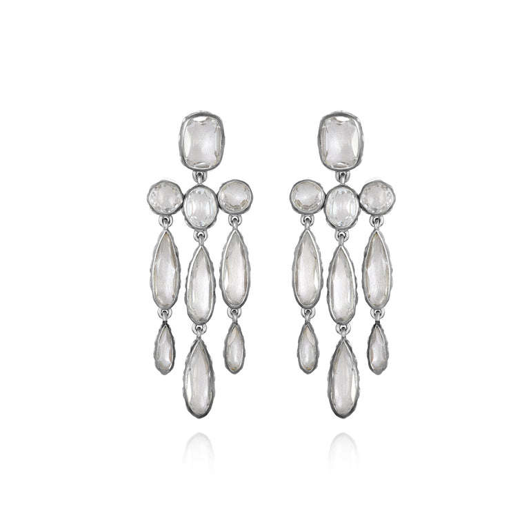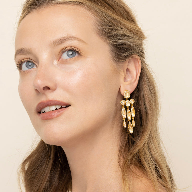 L&H Bride Long Girandole Earrings (White Rhodium or Yellow Gold Wash)