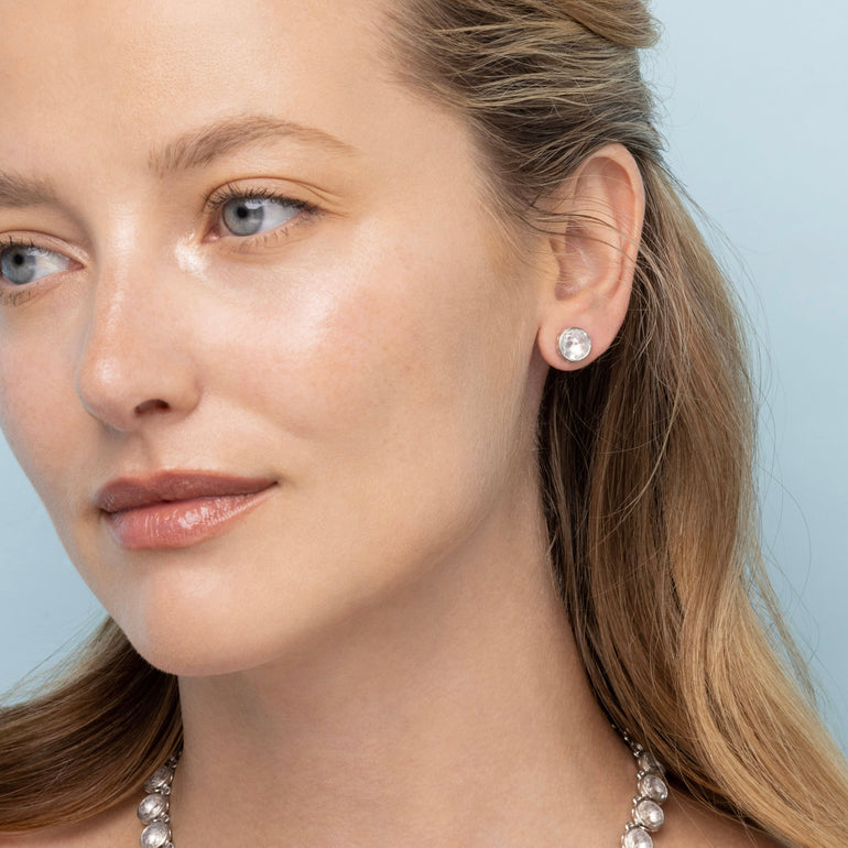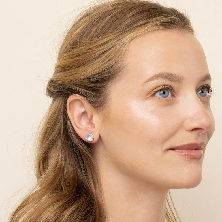 L&H Bride Round Stud Earrings (White Rhodium or Yellow Gold Wash)