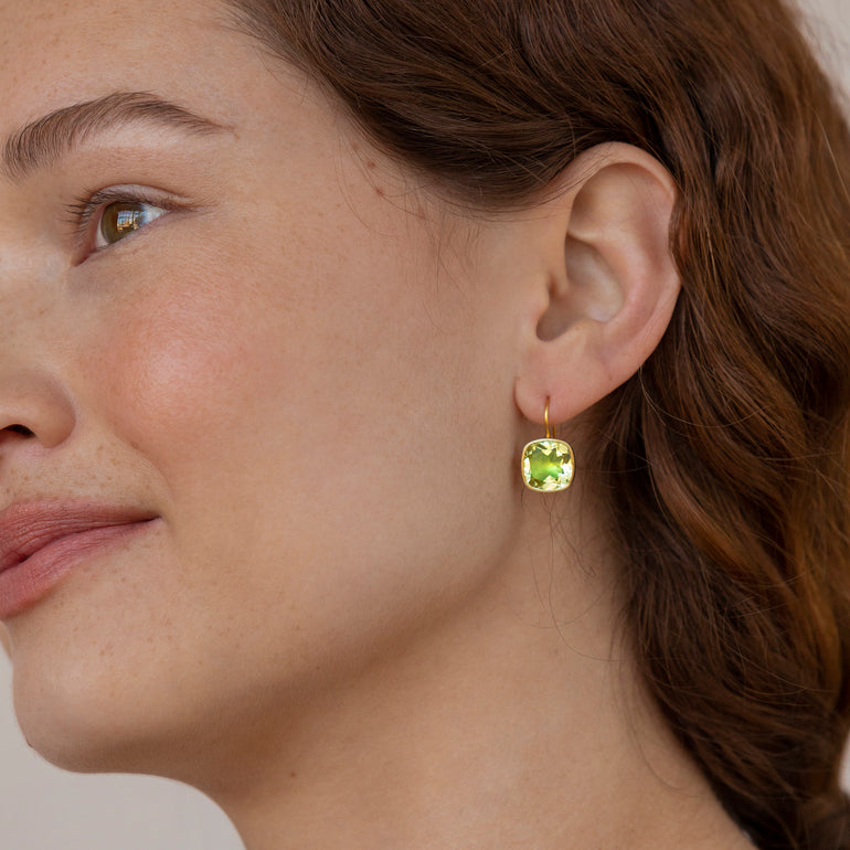 Luzia Button Earrings in Lemon Quartz (14k Gold)