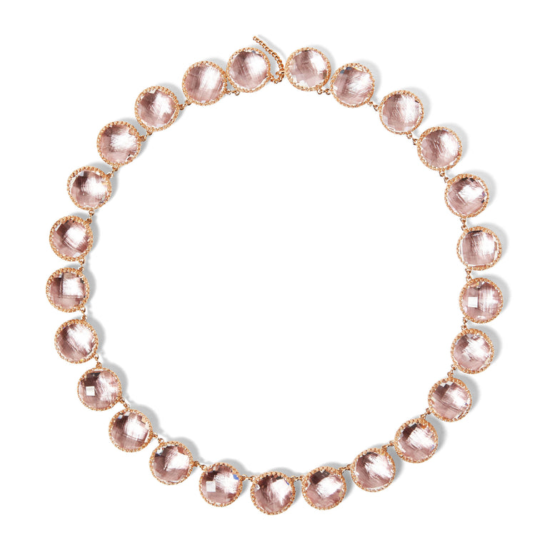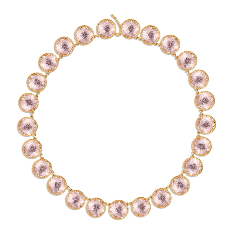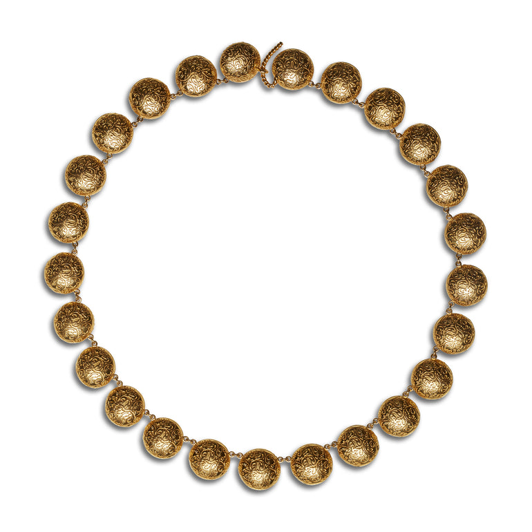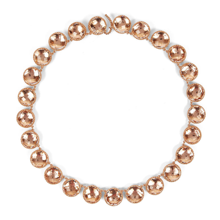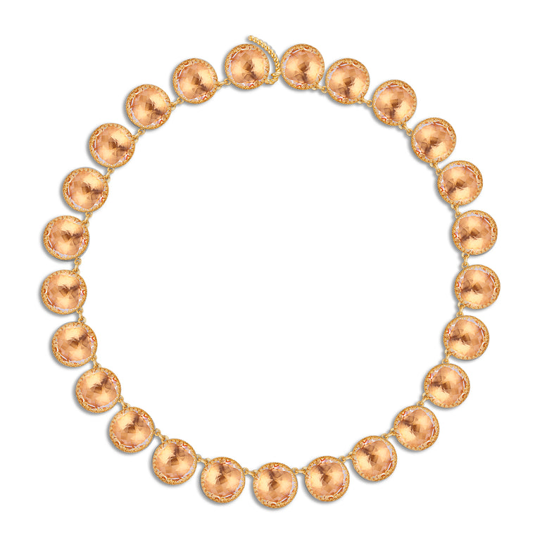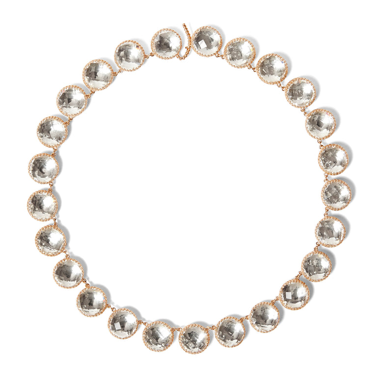 Literally defining rivière, when worn, this glistening piece was designed to resemble a sparkling river flowing around the neck. Rivières have added joy to generations, endured changing fashion, and today, they are at home with both formal and informal attire. For a statement, wear more than one and don’t forget to reverse it to highlight its beautiful arbor-patterned setting.