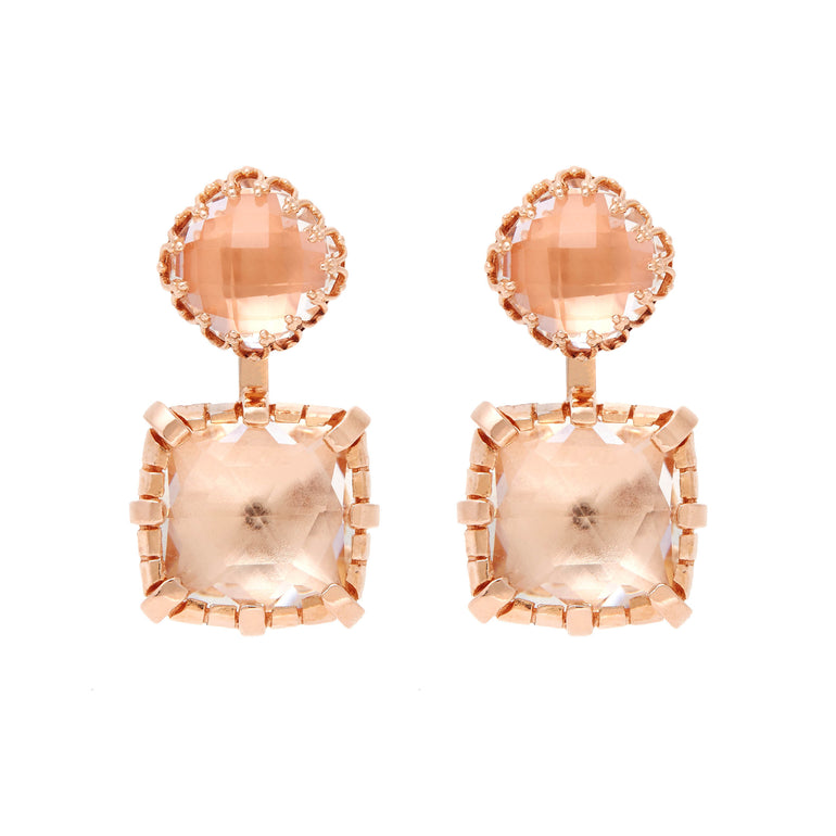 Sadie Front/Back Cushion Earrings With Cushion Drop (Rose Gold Wash)