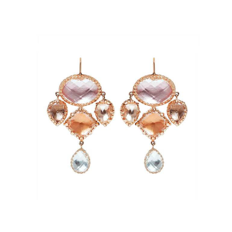 Emily began designing asymmetric collections many years ago, and they have continued to be a favorite. While our clients feel modern in these playful silhouettes, her design reference has always been the use of mismatched stones in 17th and 18th century jewelry. Also sticking to 18th century codes, girandole earrings with their requisite three pear-shaped drops are a great addition to the Sadie collection.