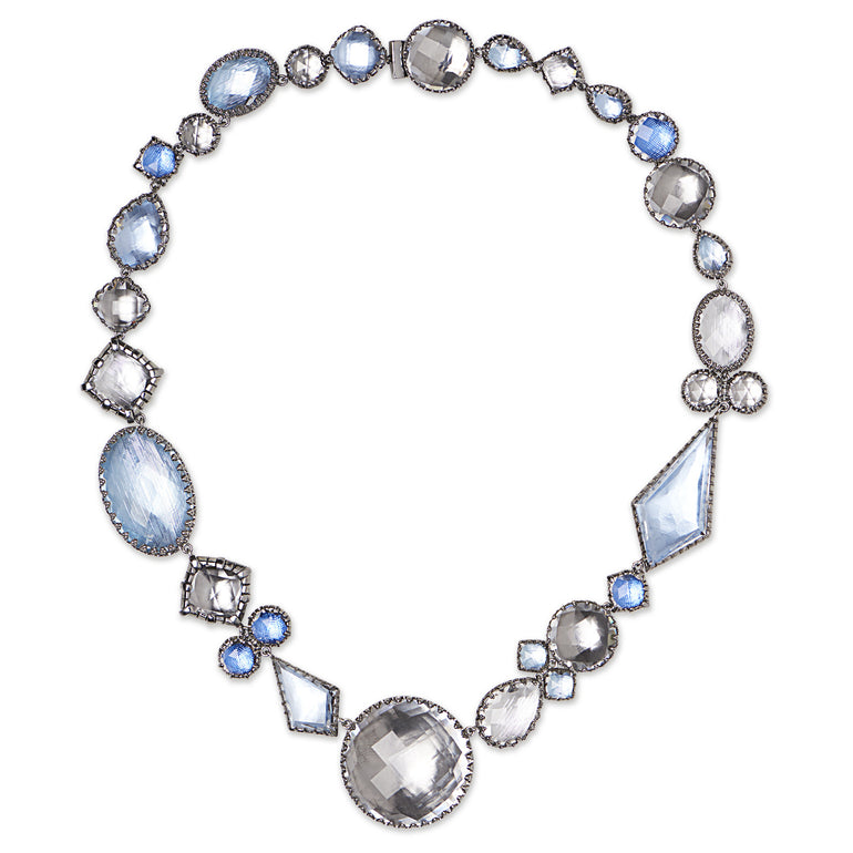 Emily began designing asymmetric collections many years ago, and they have continued to be a favorite. While our clients feel modern in these playful silhouettes, her design reference has always been the use of mismatched stones in 17th and 18th century jewelry. Here is our largest rivière, which is surprisingly not overpowering becaue of the varying shaped and sized stones.