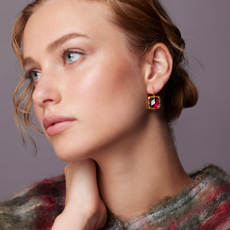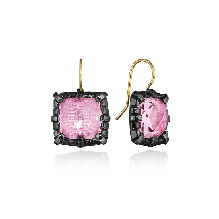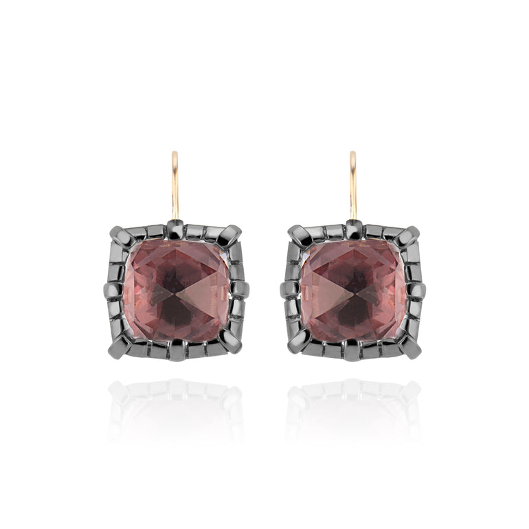 This button-style earring is known for its lovely rose-cut stone that is framed by an exaggerated Georgian collet setting. Waistcoat buttons came in all shapes and sizes in the Georgian period, and this cushion-shape would have been so handsome on a rich textile suit.
