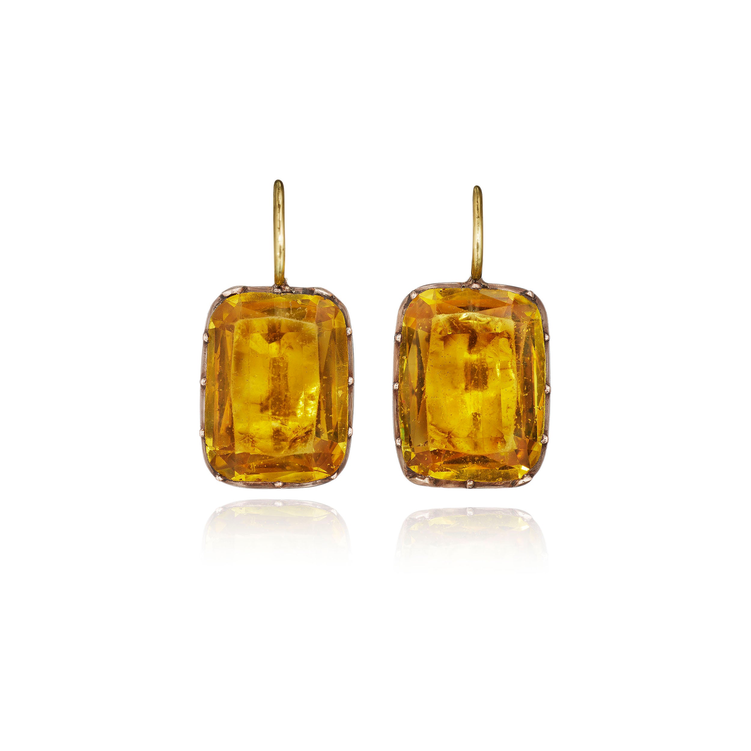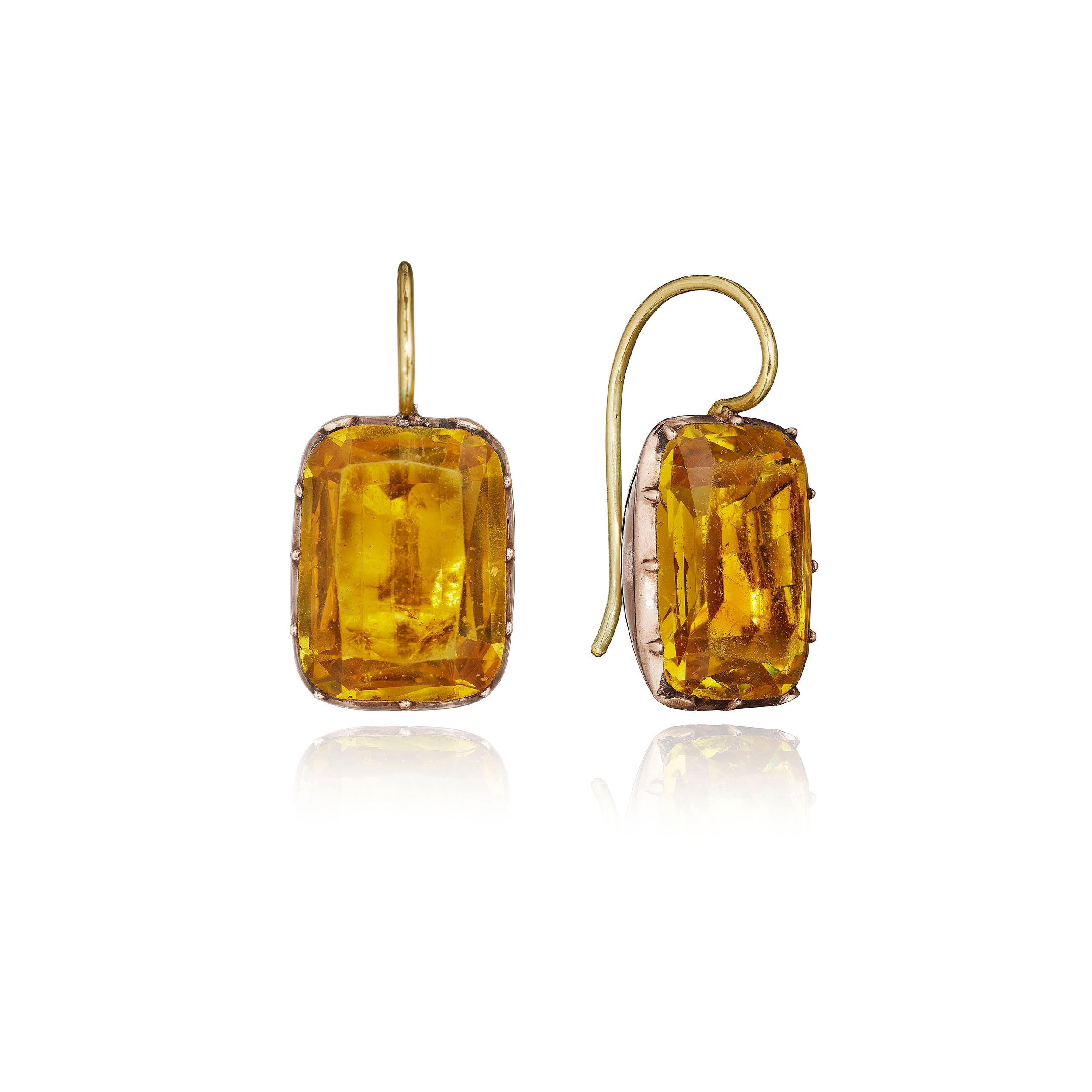 Antique Foiled Yellow Paste Button Earrings, ca 1800