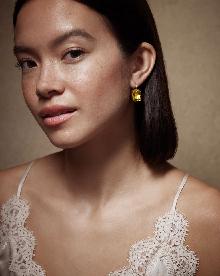 Antique Foiled Yellow Paste Button Earrings, ca 1800