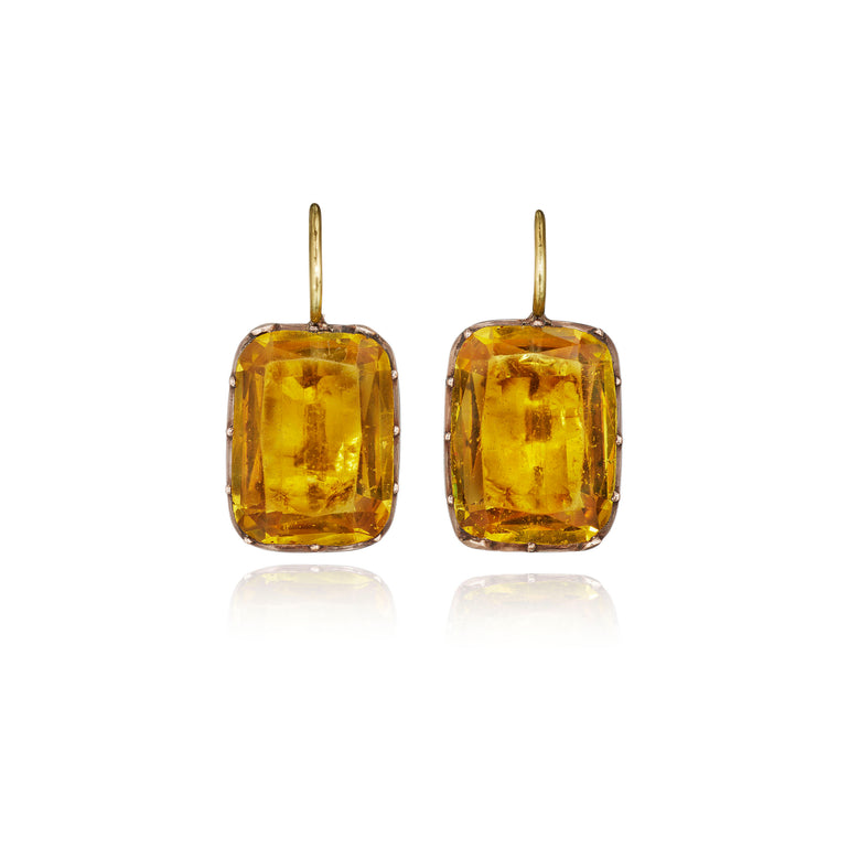 Antique Foiled Yellow Paste and Gold Button Earrings, England, ca 1800