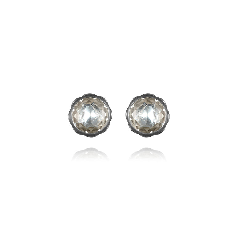 The smallest earrings in the Catherine collection are easy to wear and perfect for any occasion. The flat-cut white quartz stones are hand-set with our signature foils, making for a unique display of color.
