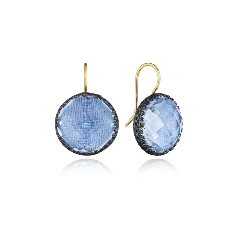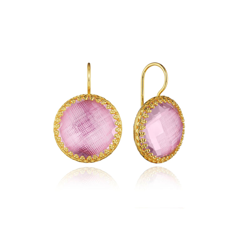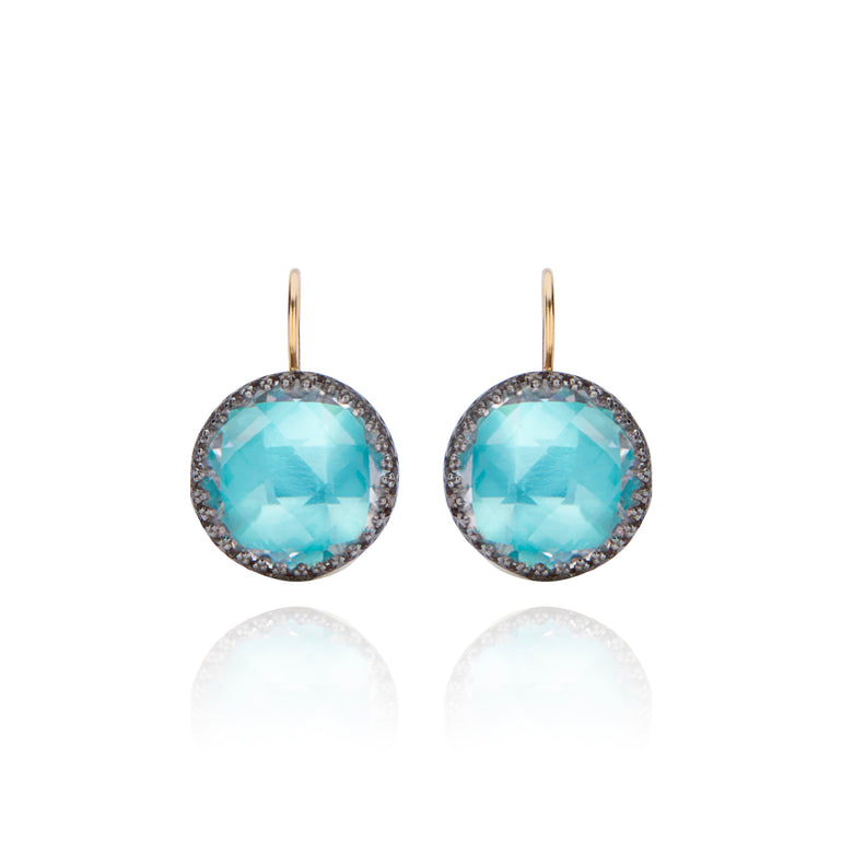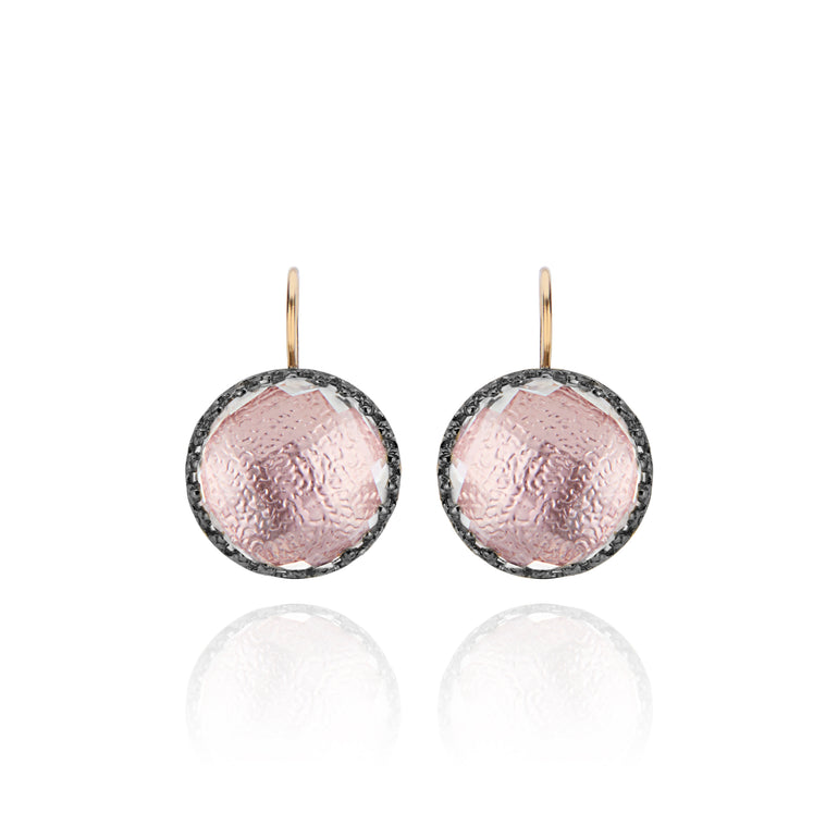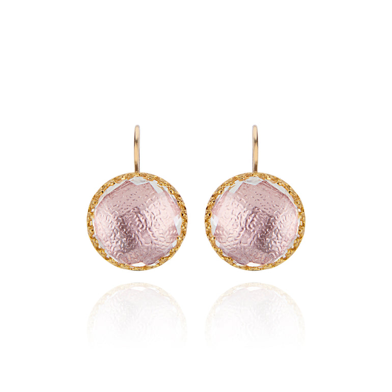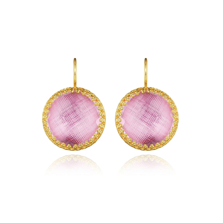 The Olivia Buttons take their inspiration from 200-year-old gentlemen’s waistcoat buttons, beautifully colored with metallic foils and decoratively backed with engraved settings. One of Emily’s first designs, these earrings have remained our most popular, with a wide-ranging fan-club.