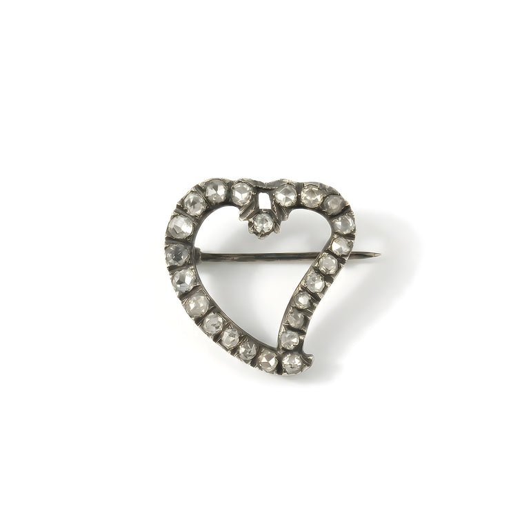 In Georgian times, the witch’s heart became a love message signaling that one was bewitched by love. This paste heart is set in silver.