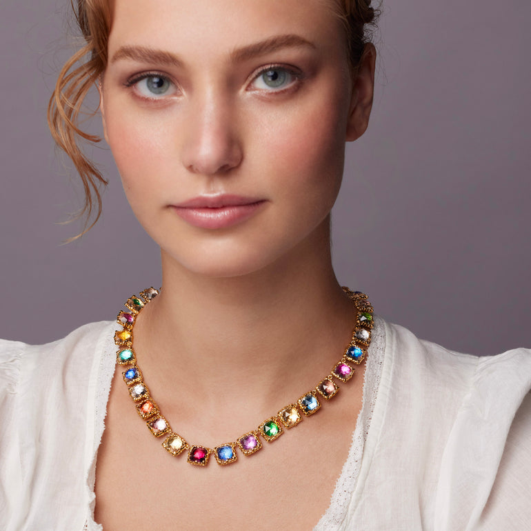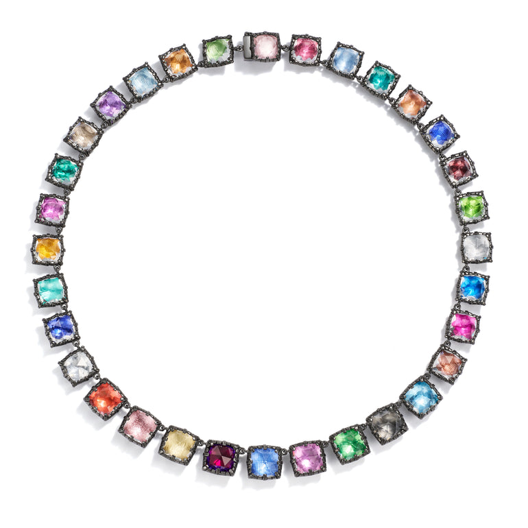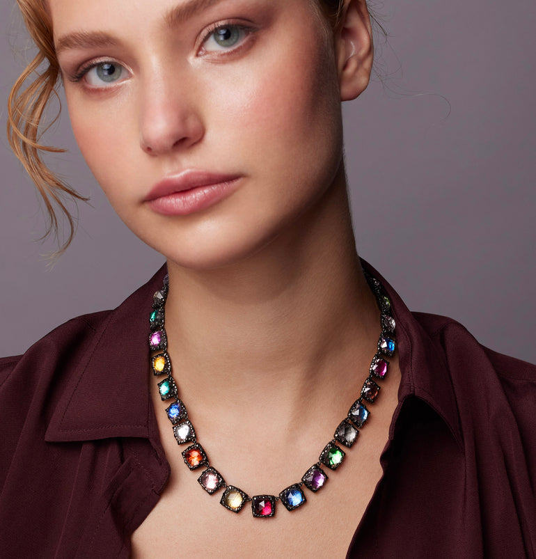 The Palette Graduated Rivière reimagines our beloved Bella silhouette through the prism of color and celebration. Each foiled, rose-cut stone is hand-set in an antique inspired, exaggerated collet, allowing Emily's signature foiling technique to take center stage.